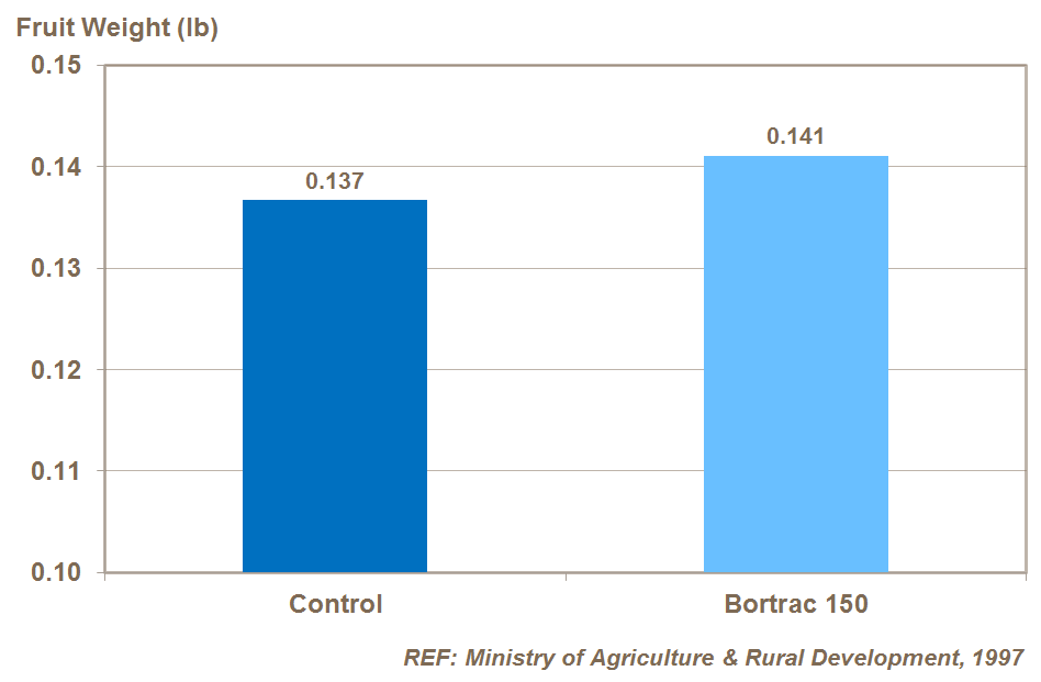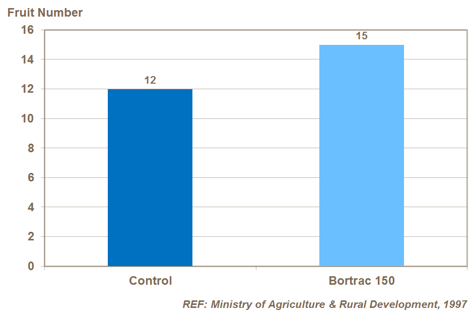 Bor beslenmesi sadece meyve sayısı nedeniyle verimi arttırmakla kalmaz, aynı zamanda meyve ağırlığı nedeniyle de verimi artırır (Vietnam'da yapılan denemeler).