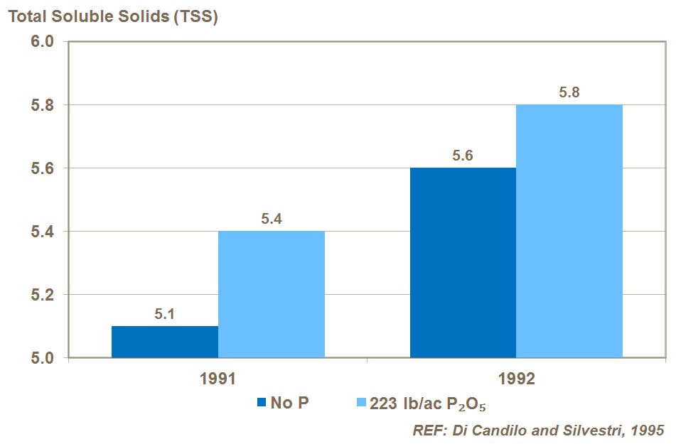 Aynı denemelerde fosfor TSS'de önemli bir artış sağlayarak işleme kalitesini artırmıştır.