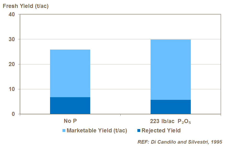Düşük fosforlu topraklarda, İtalya'da yapılan domateslerin işlendiği denemelerde gösterildiği gibi gübre fosfat meyve verimini ve olgunlaşmasını arttırır, hasattaki yeşil meyve sayısını azaltır.
